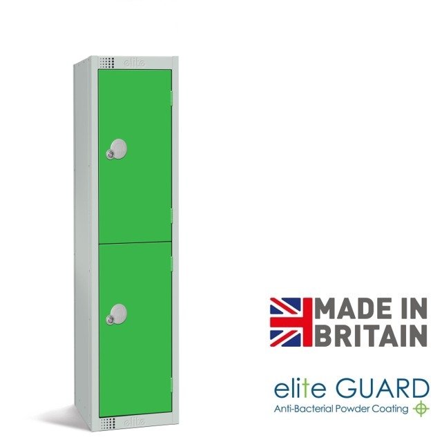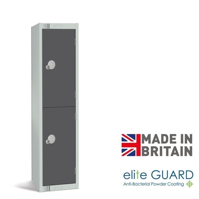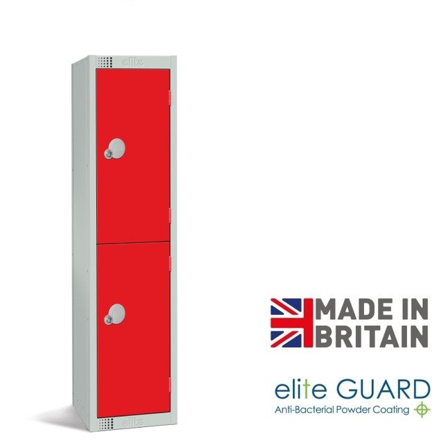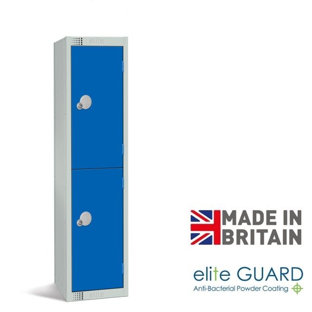 Elite 2 door low lockers are ideal for schools and younger users, these reduced height lockers can be supplied with cam locks of a latch-lock (padlock fitting). Padlocks are not included, but are sold separately.